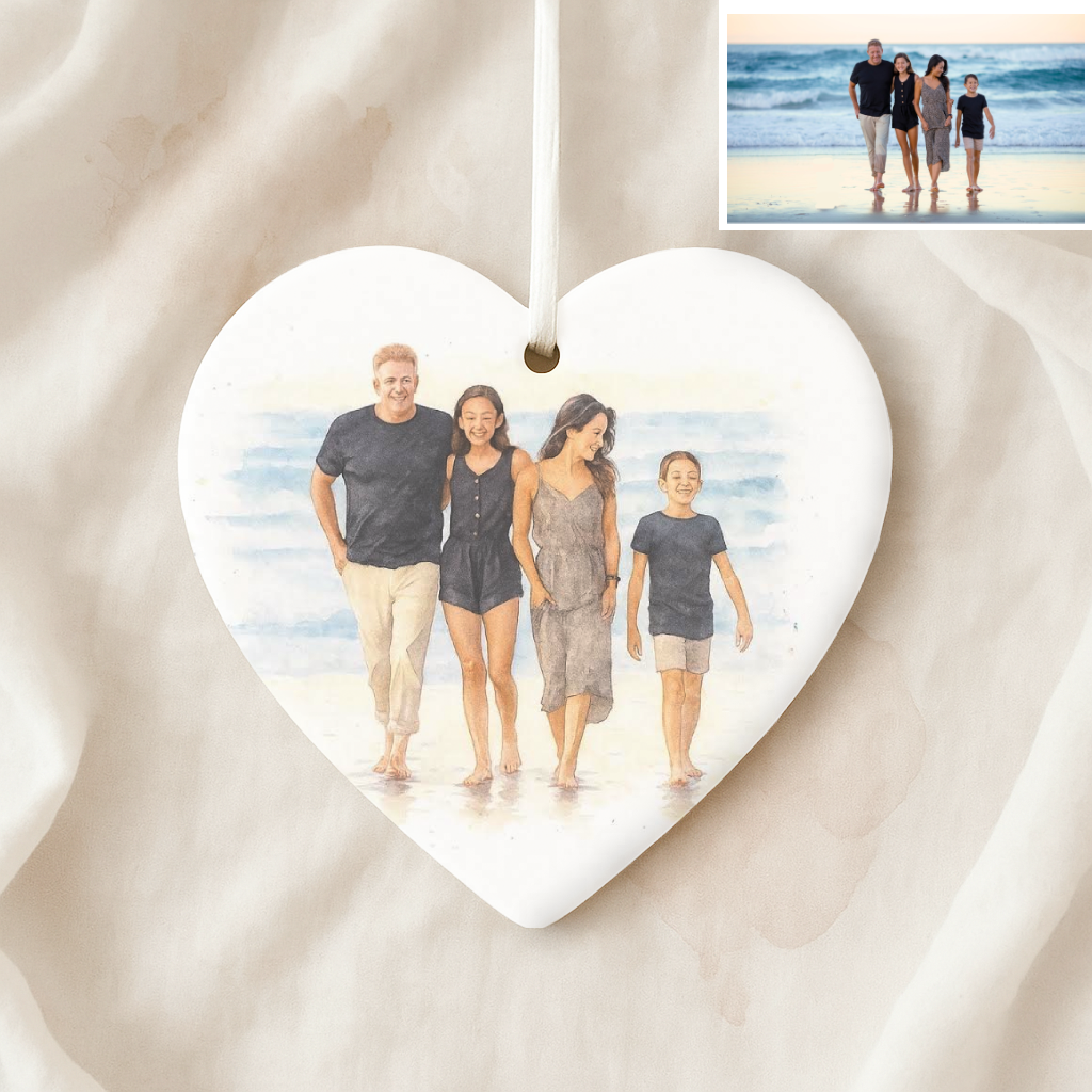 We can turn almost any photo into a stunning watercolor masterpiece! Simply send us the photo of your choice, and we’ll transform it into a beautiful watercolor image printed on a glossy ceramic ornament. You can also add optional custom text to make it truly one of a kind. Gold string included with purchase.